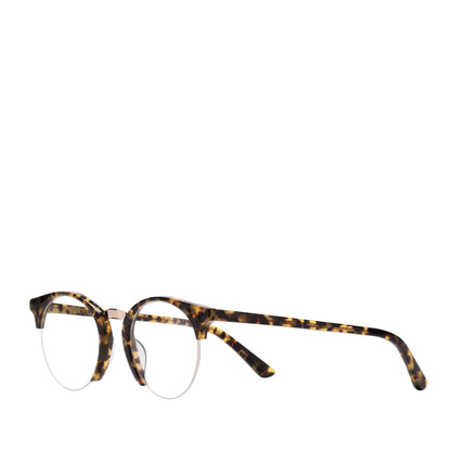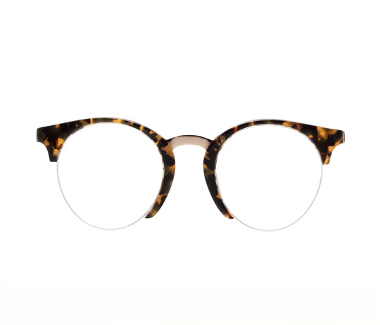 Descrizione: occhiale unisex dalla forma tondeggiante, in acetato tartarugato con ponte in metallo dorato lucido e lenti libere, comodo e leggero.