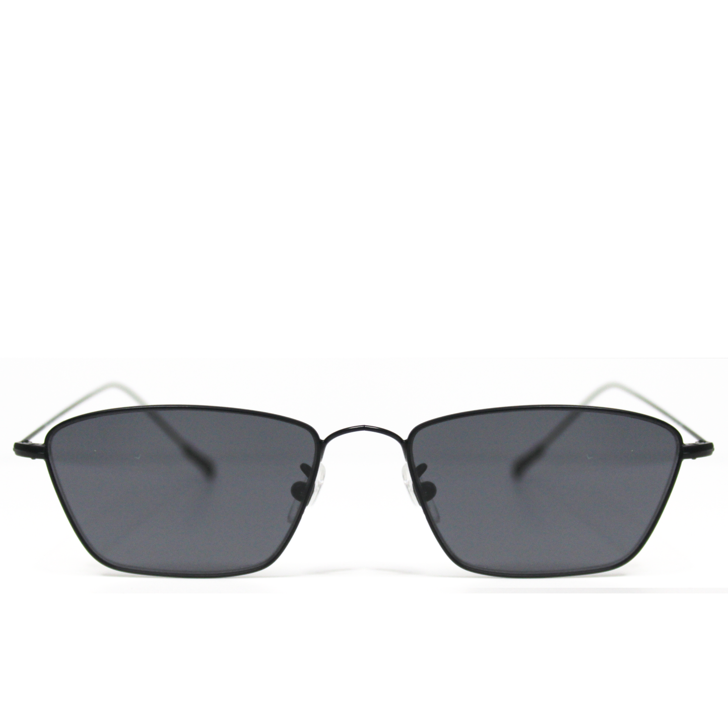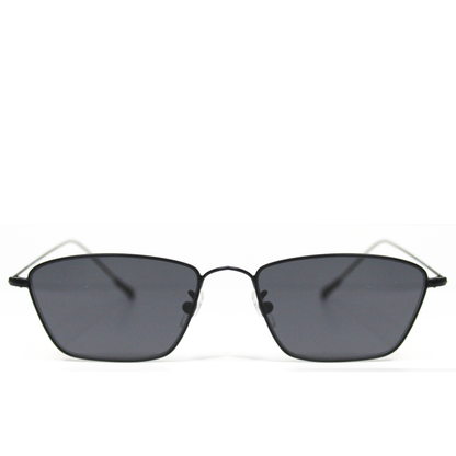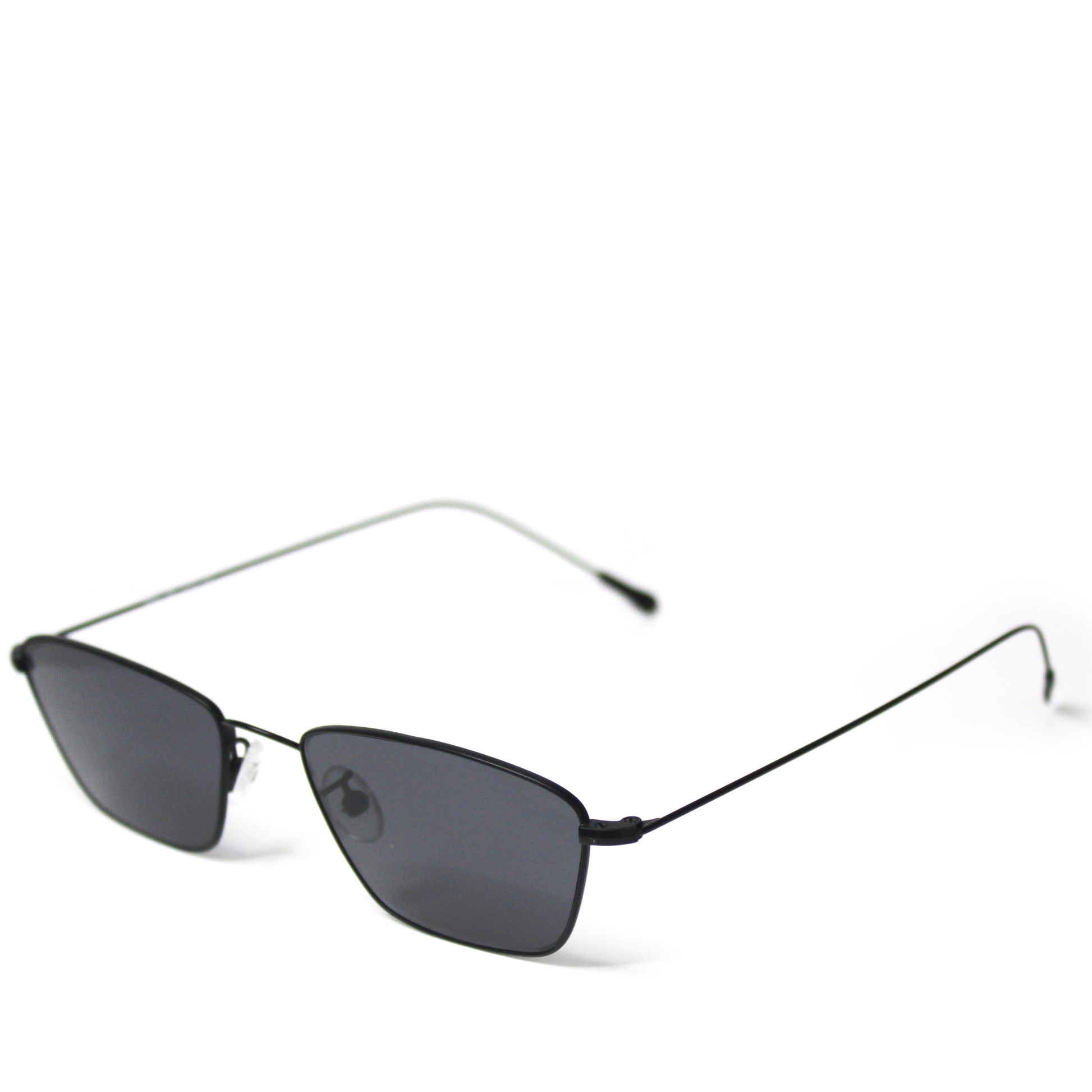 Descrizione: Occhiale da sole unisex dallo stile moderno ma con ispirazione vintage, in acciaio nero opaco, dalla forma rettangolare e stretta, comodo e leggero, decisamente resistente.